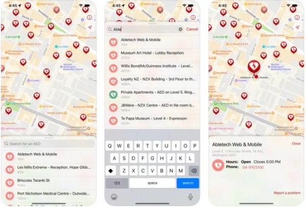 This app helps you to quickly locate the nearest AED (Automatic External Defibrillator) to your current location, in New Zealand. You are able to browse the AED location on the map, search for AED locations by name or address and get location details, contact information and open hours. The information within the app acknowledges that this app does not indicate an absolute right to use the AED, does not indicate the AED is available for use 24/7, does not indicate the AED is in full working order and does not guarantee the location is geographically correct. For a more detailed description of the app, see Google Play(external link) or the App Store(external link), or read the reviews below.