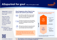Allopurinol for gout (English [PDF, 175 KB], te reo Māori [PDF, 284 KB], Samoan [PDF, 332 KB], Tongan [PDF, 478 KB])