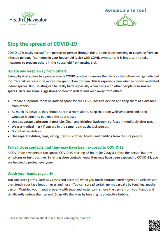 COVID-19 positive – stop the spread [PDF, 193 KB] Healthify He Puna Waiora, NZ, 2021