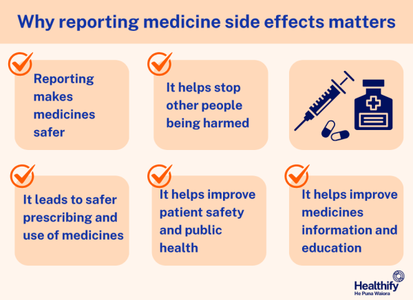 The following links have more information about medicine side effects. Be aware that websites from other countries may contain information that differs from New Zealand recommendations.